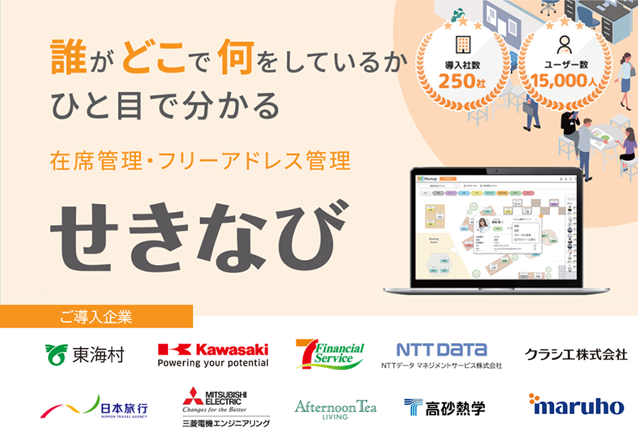 250社 1.5万人以上に選ばれる在席管理ツール「せきなび」