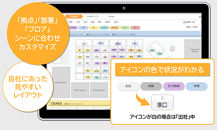 誰が、どこで、何をしているか、ひと目で分かる。在席管理&コミュニケーション活性化ツール