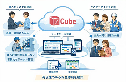 担当者しか分からなかった修繕情報をクラウドで一元管理。誰でも同じ情報にアクセスできるため、異動や退職時の引継ぎリスクも軽減します。属人的な判断に頼らない、再現性のある保全体制を構築できます。