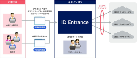 ID管理、SSO、アクセス制御などの一元管理を目的としたキヤノンITソリューションズオリジナルのIDaaSです。