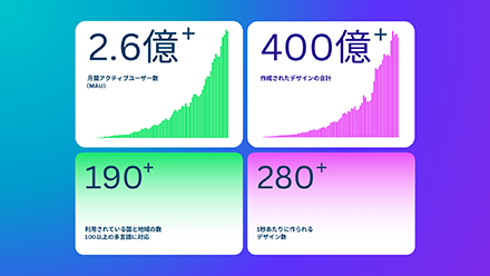 「デザインの民主化」をミッションに、オーストラリア・パースで創業したCanvaは、世界190ヶ国、2.6億人のユーザーに利用されています。累計のデザインは400億。