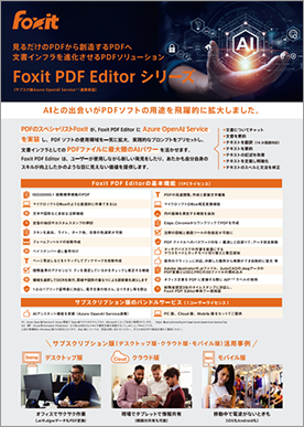 Foxitは、国際標準規格に準拠したPDFリーダーとPDF作成・編集ソフトの両方を提供している、世界でも数少ないPDFの専門企業です。業界をリードする先進的な開発力を持ち、電子署名ソリューションや、サブスクリプション版のChatGPT連携ソリューションにより、PDFドキュメント活用の可能性を飛躍的に拡大します。