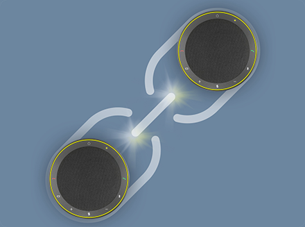 2台のSpeak2 75をBluetoothで連結することで、音のカバー範囲が倍増。1つの大きなスピーカーフォンとして使えるように。大きな会議室でも全員の声をしっかり集音し、クリアに届けます。ワイヤレス接続なので、置き場所もフレキシブル。操作も簡単で連結用のボタンを押すだけです。