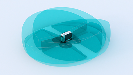 複数台のMid-360を組み合わせることで、無人走行車両の安全性を高めることができます。車両の死角になるような場所であっても、組み合わせて使うことによって解決することができます。