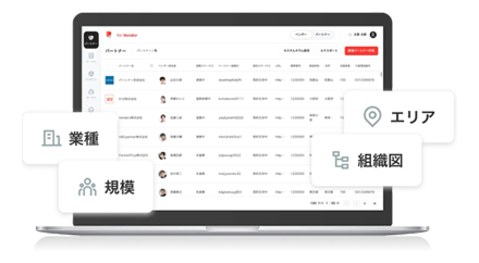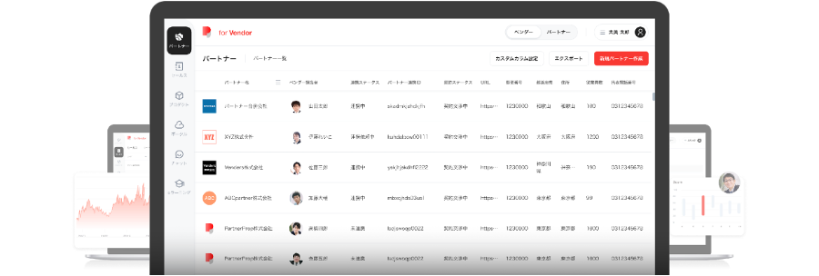 パートナー契約情報をはじめ、営業エリア・営業人数、企業・担当者・顧客の各種データまで、パートナービジネスに関する情報を一括で集約できます。