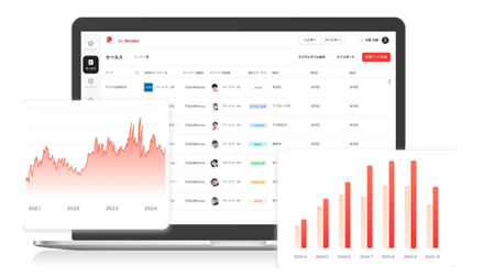 売上実績だけでなく、パートナープログラムに関する各種成果指標を表・グラフで柔軟に集計できます。